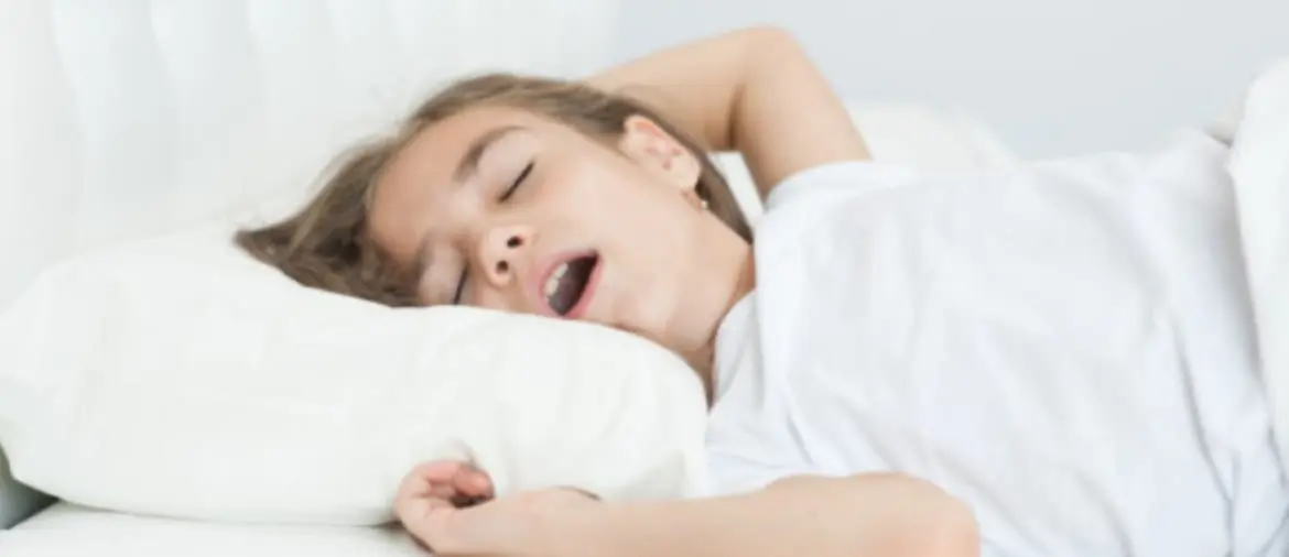 Loud snoring, Breathing pauses during sleep, Restless sleep, Mouth breathing, Night sweats, Difficulty waking up in the morning, Excessive daytime sleepiness or fatigue, Behavioral problems (such as irritability, aggression, hyperactivity, and difficulty concentrating), Poor academic performance (since sleep disruptions can affect cognitive function, leading to difficulties in learning), and Enuresis (bedwetting)